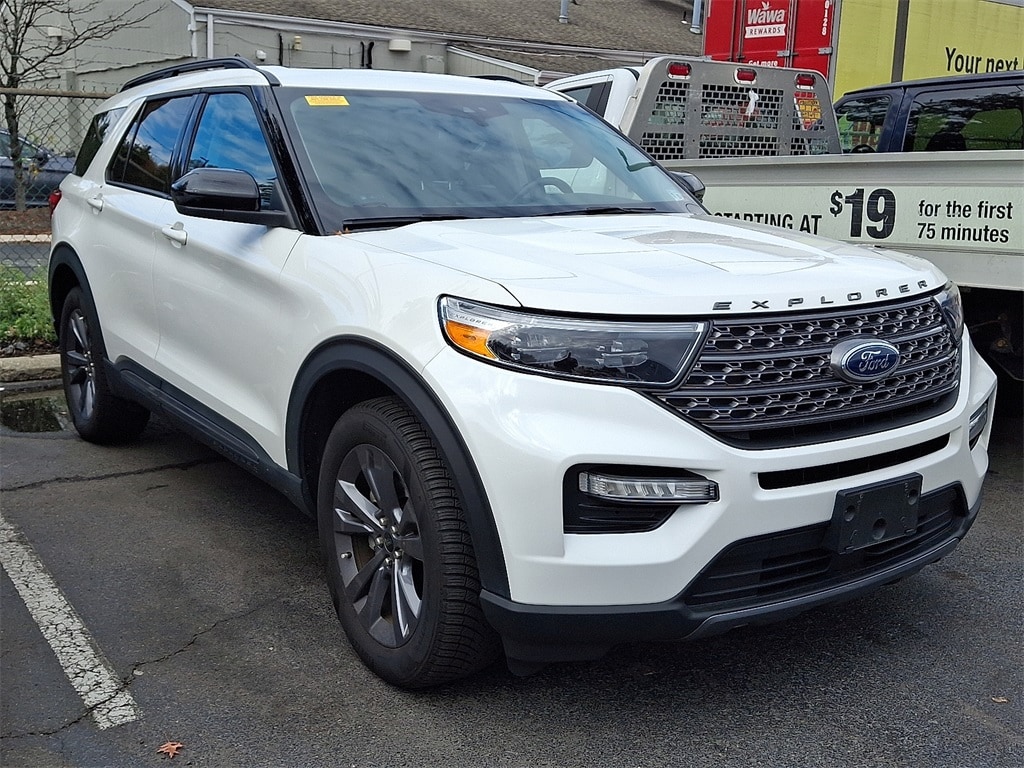 This 2022 Ford Explorer XLT 4WD is a versatile and well-equipped SUV finished in a stunning Star White Metallic Tri-Coat exterior over a comfortable Ebony/Light Slate ActiveX interior. Powering this Explorer is the efficient and responsive 2.3L EcoBoost I-4 engine paired with a 10-speed automatic transmission. It comes standard with modern conveniences like Heated Seats, Power Liftgate, and SYNC® 3 with an 8-inch touchscreen. Adding to its capability and style are the optional features, which include the 4WD Regional Discount, Twin Panel Moonroof, Ford Co-Pilot360TM Assist+, and Voice-Activated Touchscreen Navigation System. This specific model also boasts the 20" Machined Aluminum Wheels and the Equipment Group 202A, which adds Remote Start System, LED Fog Lamps, and an 8-way Power Passenger Seat, all contributing to a compelling and confident driving experience.. CARFAX One-Owner. Certified. 20/27 City/Highway MPG